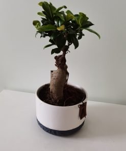 Bonsai medelis „Ficus ginseng”, 40 cm aukščio, gražiame keramikiniame vazone.