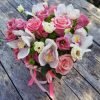 Puokštė „Myliu“ sukurta iš rožių, gipsomos, euscomų, orchidėjų ,žalumos bei sukomponuota dėžutėje.