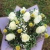 Žymos: gėlės, gyvos gėlės, rožės, rožių puokštė