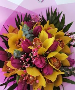 Kiekviena gėlių puokštė yra komponuojama individualiai Jūsų užsakymui, todėl puokštė gali skirtis nuo pavaizduotos paveikslėlyje gėlių asortimentu (dėl sezoniškumo), forma ar dekoravimu. Puokštės kompozicija visada atitiks kainą.